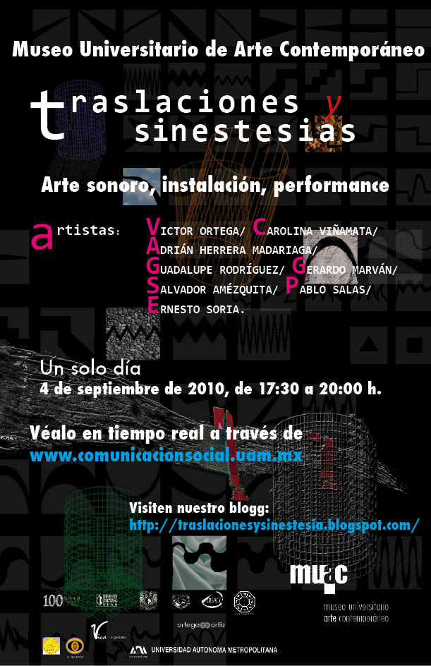 Este proyecto se puede leer como una exploración en torno a la sonoridad de lo gráfico y a la plasticidad del sonido, así como a las traducciones tactiles que de estos elementos puden llegar a hacerse. Es, en este sentido, una traslación, no sólo en el sentido espacial del término, sino en el psicológico y el conceptual. El título Traslaciones y sinestesias, alude también a dos conceptos con los cuales ambos vocablos guardan una relación de sinonimia: traducción y metáfora.