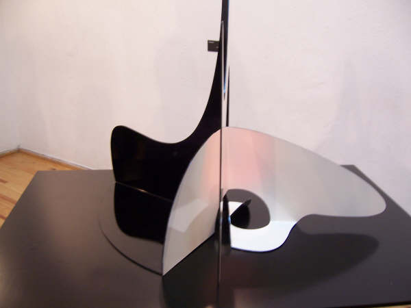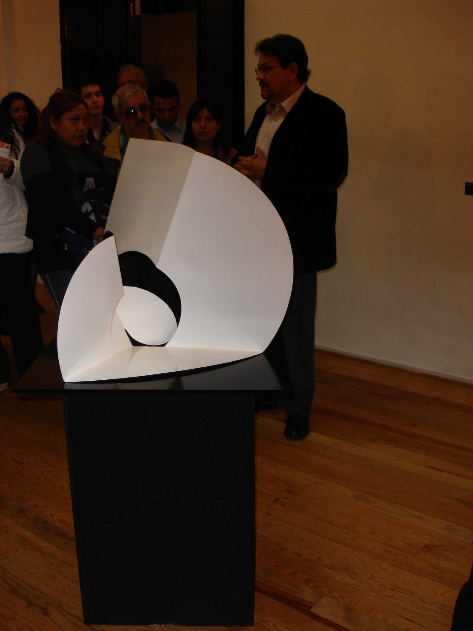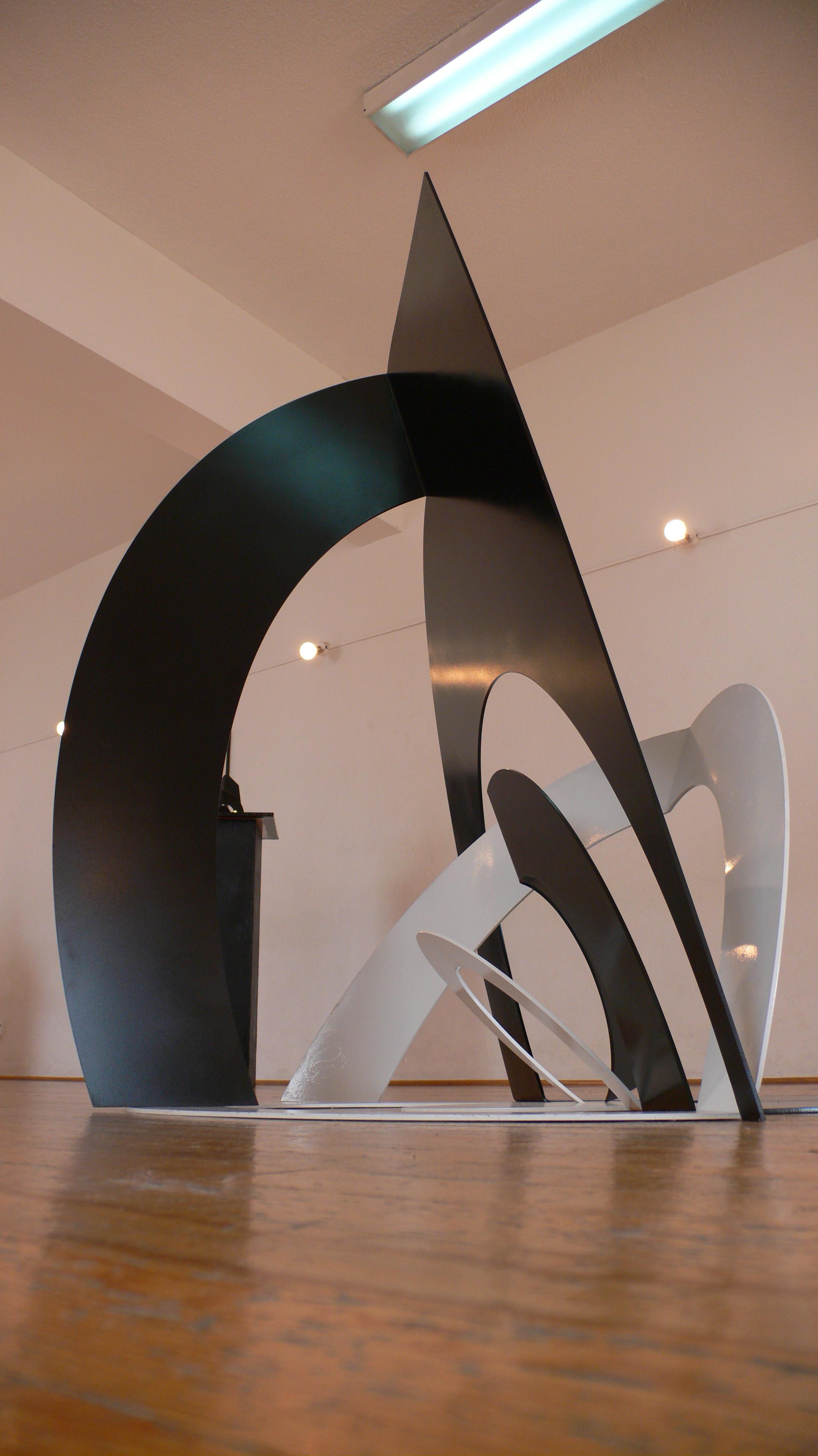 No es una exposición escultórica convencional. Las piezas están acompañadas de montajes fotográficos y grabados al aguafuerte en los que las vemos emplazadas en algunos espacios públicos de la ciudad de México, simulando las dimensiones a las que aspiran ser construidas. El escultor pretende con esto provocar en el espectador “un ejercicio imaginativo que le permita hacerse lo suficientemente pequeño para recorrerlas y penetrarlas. Provocar ese acto creativo es la función de las imágenes bidimensionales que, mediante artificios tecnológicos, llevan a algunas de estas obras a ocupar espacios monumentales en diversos sitios urbanos”.