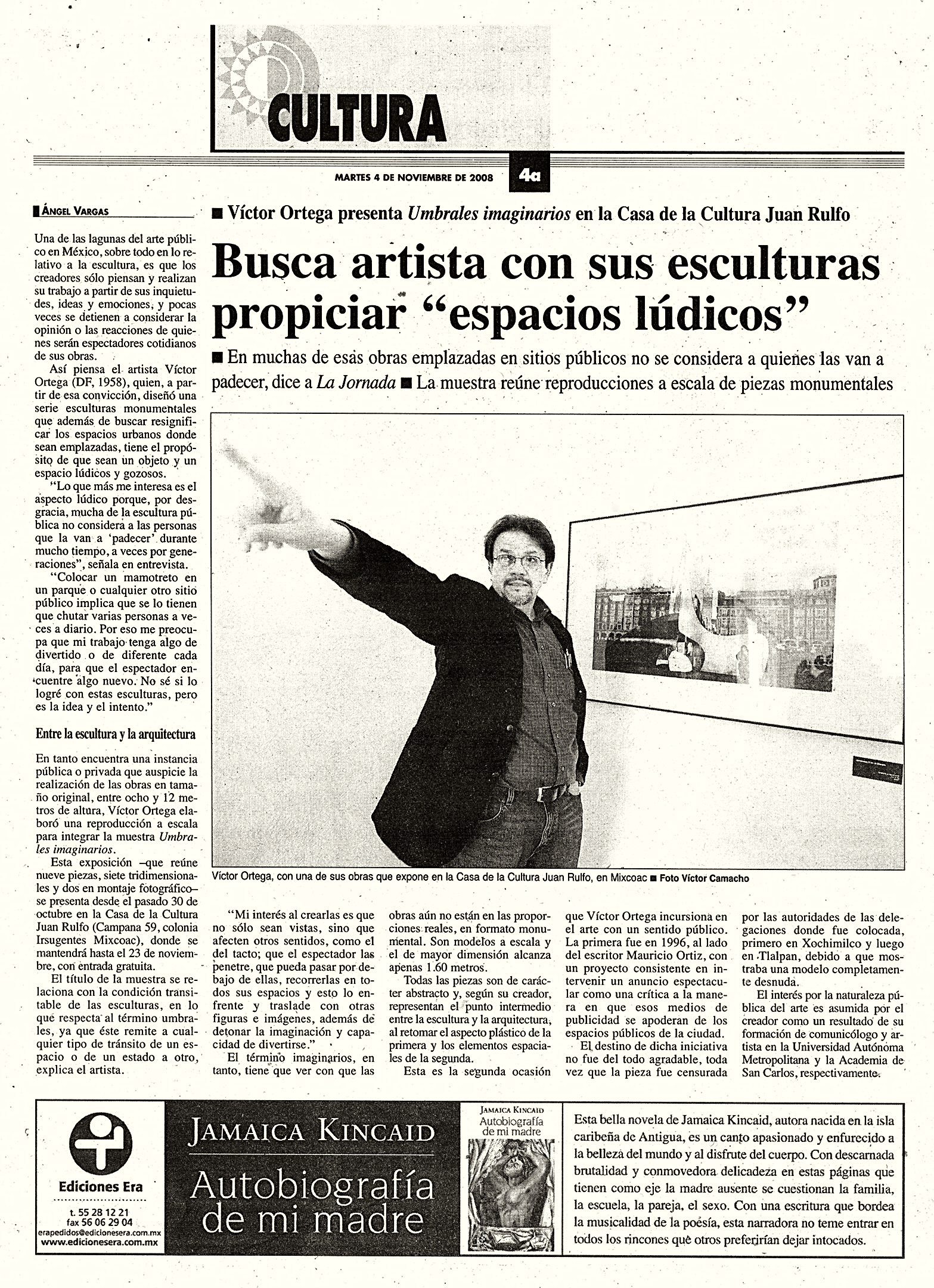 Nueve esculturas de pequeño y mediano formato se presentarán en la Casa de Cultura Juan Rulfo.  Aunque la más grande mide alrededor de 1.60 metros, su autor las diseñó para ser construidas de al menos 8 metros de altura. Se trata de proyectos de esculturas transitables que –no dice Victor Ortega– “fueron concebidas para su emplazamiento en lugares públicos y a una escala tal que permita a las personas transitarlas por dentro y por fuera”.